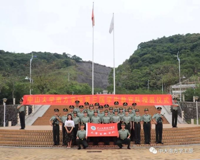 “我是中山大学南方学院学生教官队队员,我宣誓:时刻牢记中山大学南方学院学生工作守则;坚决执行上级的命令和指示;忠于职守,努力工作;持之以恒,不畏艰苦;尊敬领导,团结友爱;军容严整,举止端正;爱护被装和公物;遵守社会公德,讲究文明礼貌;不断提升军事技能,争当优秀学员。”