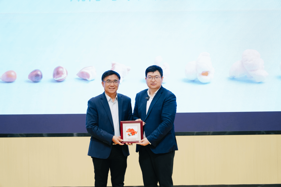 讲座尾声,学子们踊跃提问,围绕岗位招聘、AI学习路径、文化数字化发展等问题与崔岩先生深入交流。校长汤涛院士向崔岩先生赠送纪念品——广绣作品《木棉花》。