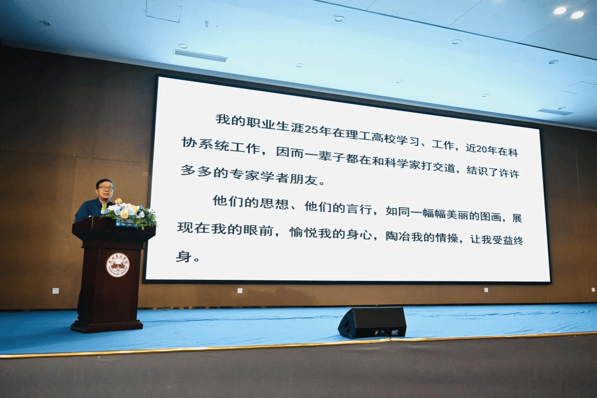 讲座伊始,苏青教授结合自身职业经历切入主题。他介绍道,自己前25年在理工高校学习、工作,后20年投身科协系统工作,长期与各领域科学家、科普专家保持密切接触,积累了丰富的学术交流经验。他强调,这些宝贵的交流经历,不仅带来知识的增长,更在思维方式塑造与精神境界提升等方面收益终身。